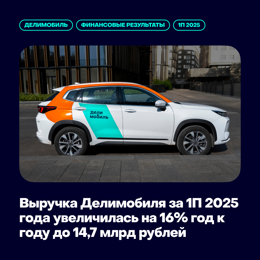 Выручка Делимобиля за 1П 2025 года увеличилась на 16% год к году до 14,7 млрд рублей.