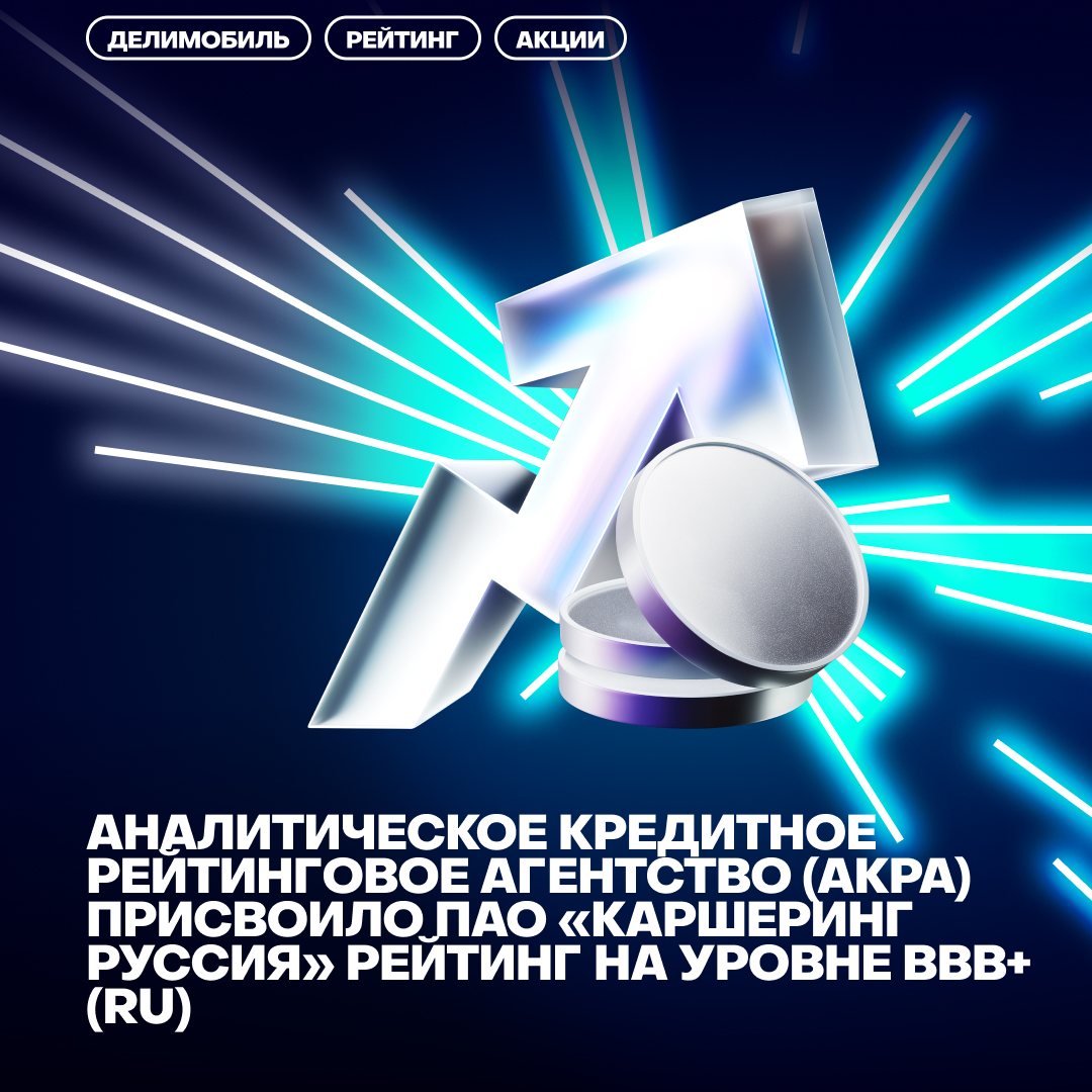ПАО «Каршеринг Руссия» (бренд Делимобиль, тикер DELI), крупнейший оператор каршеринга в России, сообщает, что АКРА в рамках ежегодного пересмотра изменило кредитный рейтинг компании с уровня А до уровня BBB+. При этом агентство высоко оценило сильный бизнес-профиль компании, финансовую прозрачность, степень загрузки автопарка, востребованность услуг, географическую экспансию, ликвидность, темпы роста и совершенствование корпоративного управления.